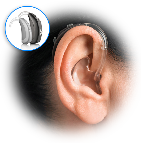 A behind-the-ear hearing aid directly hooks over the top of the ear and rests behind the ear. The hearing aid rests behind the ear and a plastic acoustic tube directs amplified sound into the ear tip or customized ear mold that is fitted inside the canal. This hearing aid is perfect for pediatric (children) and geriatric (older adults) population.